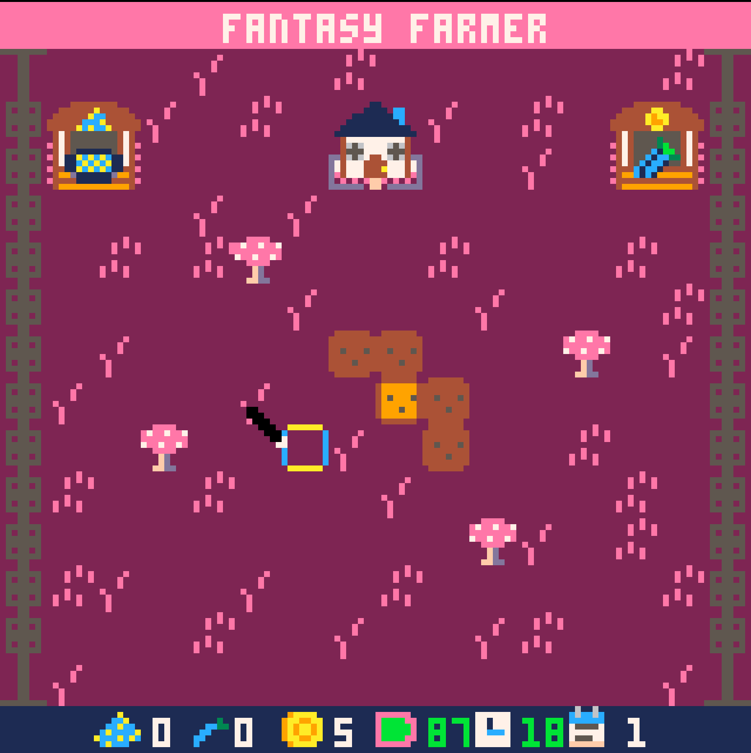 | Tags | Endless, Fantasy, fantasy-console, Farming, farming-game, PICO-8, Pixel Art, Simple |